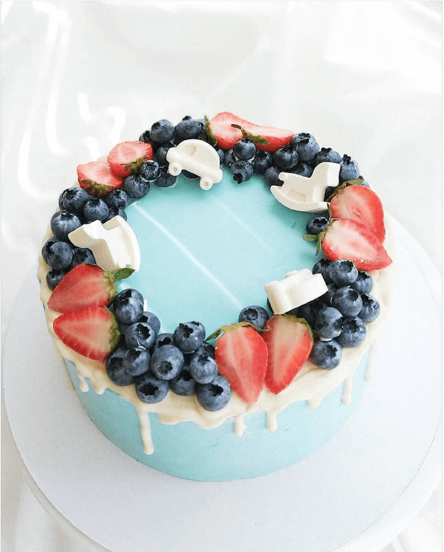 Сочетание белого и голубого просто шикарное, а с добавлением ягод и игрушек из шоколада так вообще волшебство!