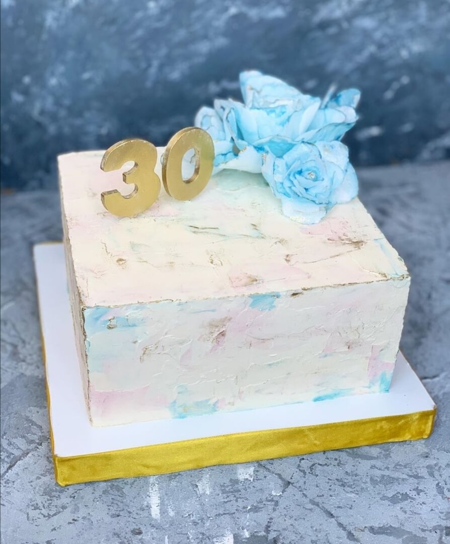 Легкий невесомый декор аппетитного тортика на третий крупный юбилей